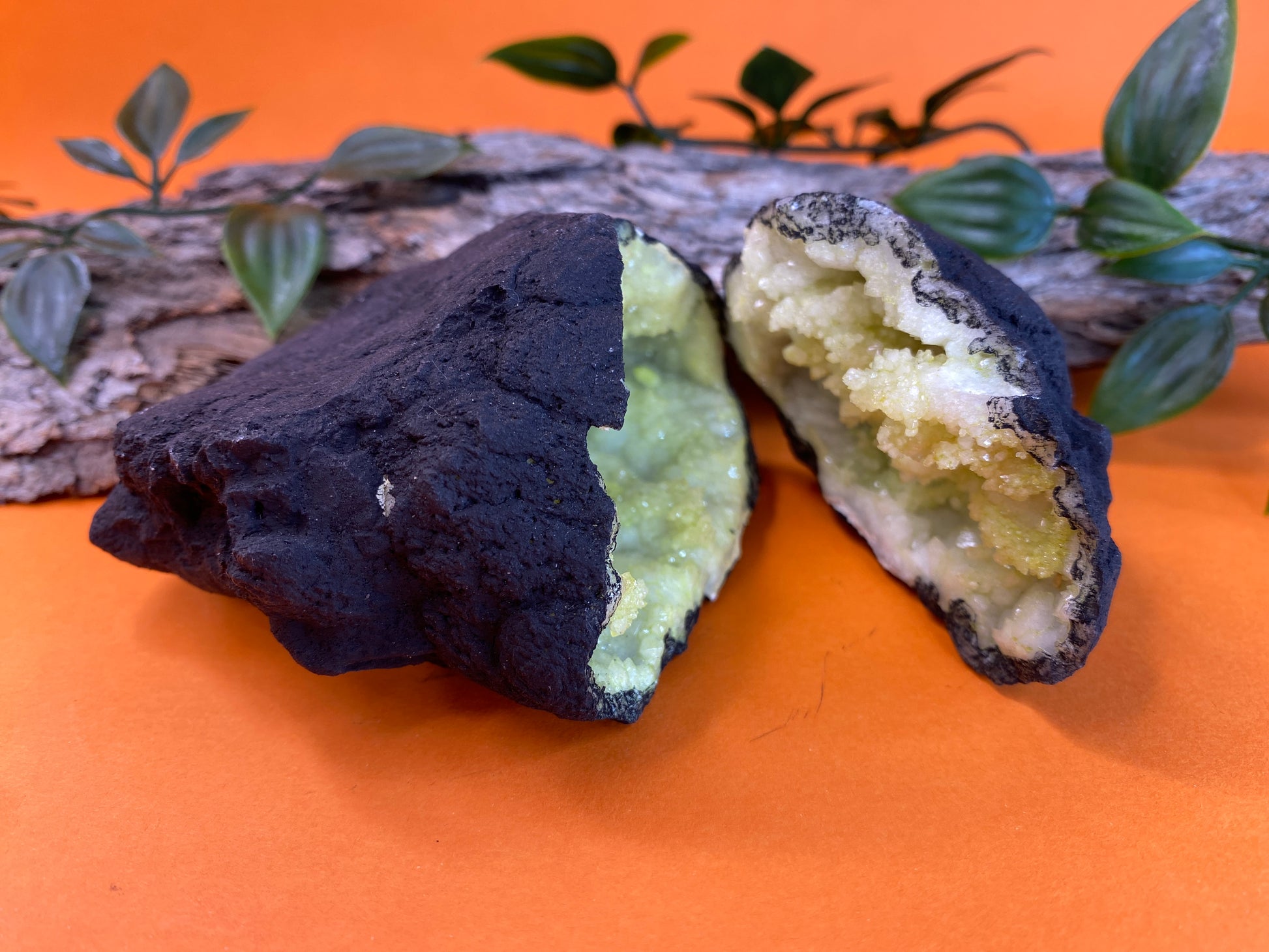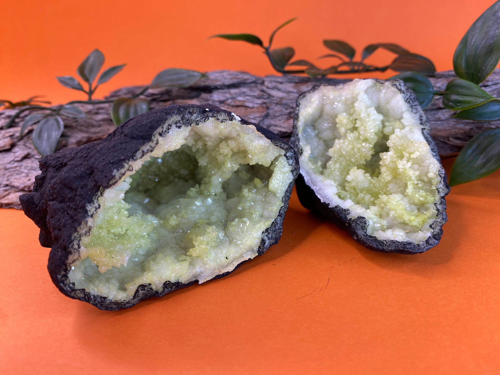 From the outside, they look like any old rock, but once cracked open they are bursting with pretty quartz druzy that sparkle in the light.